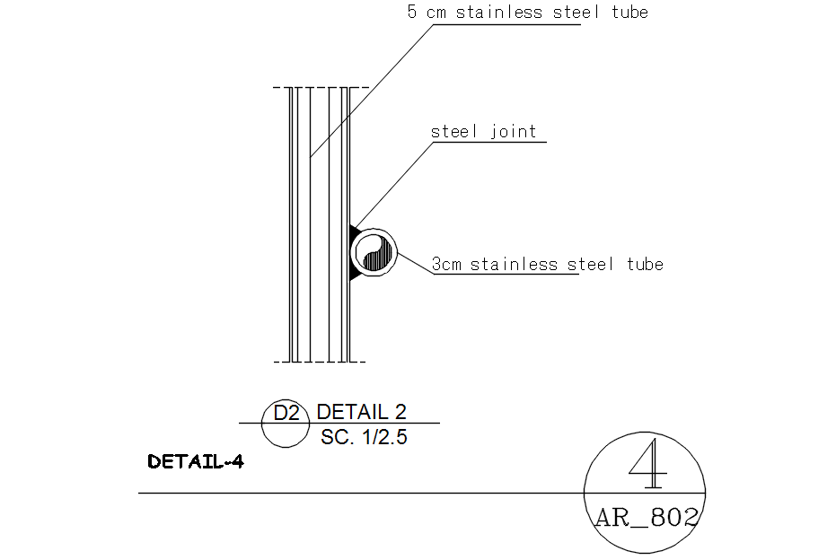 This architectural drawing is Stainless steel section in detail AutoCAD drawing, 2D drawing, dwg file, CAD file. In this drawing there were steel joint, 3 & 5 cm stainless steel tube etc. are given with details. For more details and information download the drawing file.