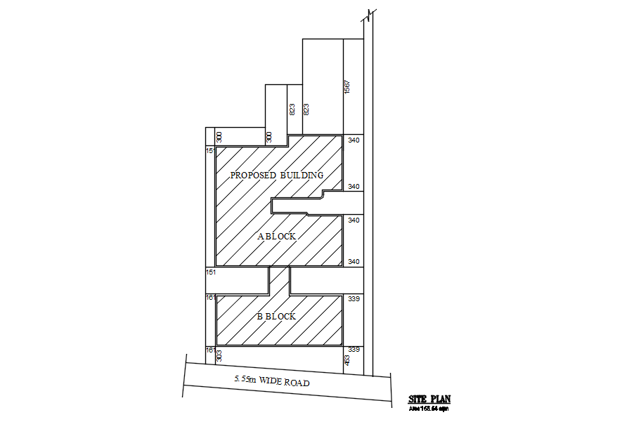 This architectural drawing is Site plan of residential building in detail AutoCAD drawing, dwg file, CAD file. In this drawing there were A block and B block is given with details and dimensions. For more details and information download the drawing file.
