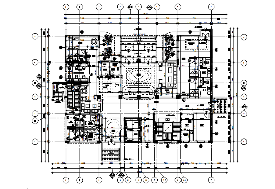 Ground floor plan of commercial building with detail AutoCAD drawing, CAD file, dwg file