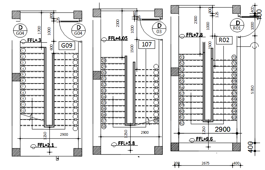 This architectural drawing is Staircase design of different floors with detail AutoCAD drawing, dwg file, CAD file. The U-shape is similar to the L-shape because it can be located in a corner. U-shaped stairs consist of two parallel straight staircases that have a 180-degree turn. For more details and information download the drawing file.