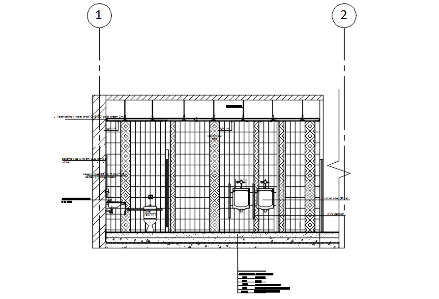 This architectural drawing is Attached toilet-bathroom design in AutoCAD 2D, dwg file, CAD file. In this drawing there were ceramic tiles, toilet block, washbasin, PVC partition, urinal toilet block etc. are given with details. For more details and information download the drawing file.