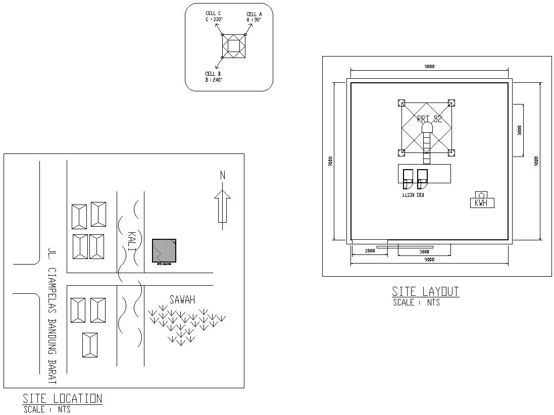 Site location and site layout of tower structure in detail AutoCAD drawing, dwg file, CAD file