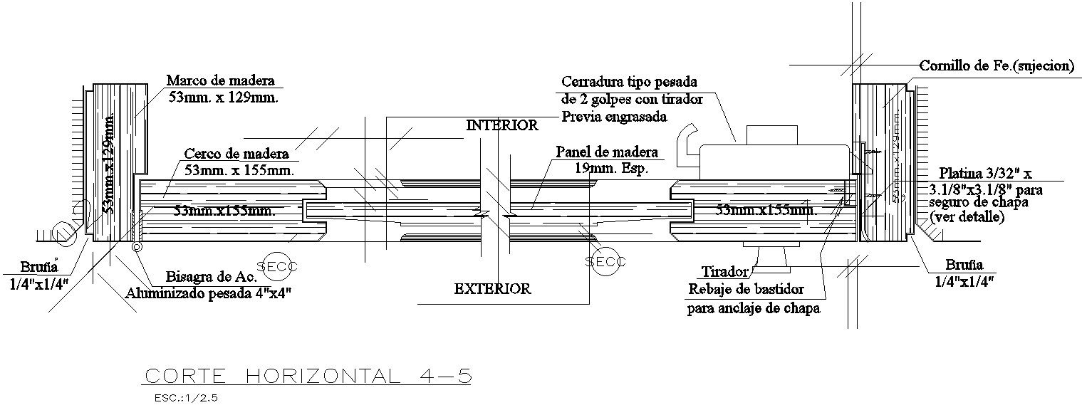 This architectural drawing is Horizontal section of structural member in detail AutoCAD drawing, dwg file, CAD file. In this drawing there were Frame recess for sheet metal anchoring, 2 strikes heavy type lock with handle Pre-oiled, wooden fence, Wooden frame, etc. are given with details. For more details and information download the drawing file.