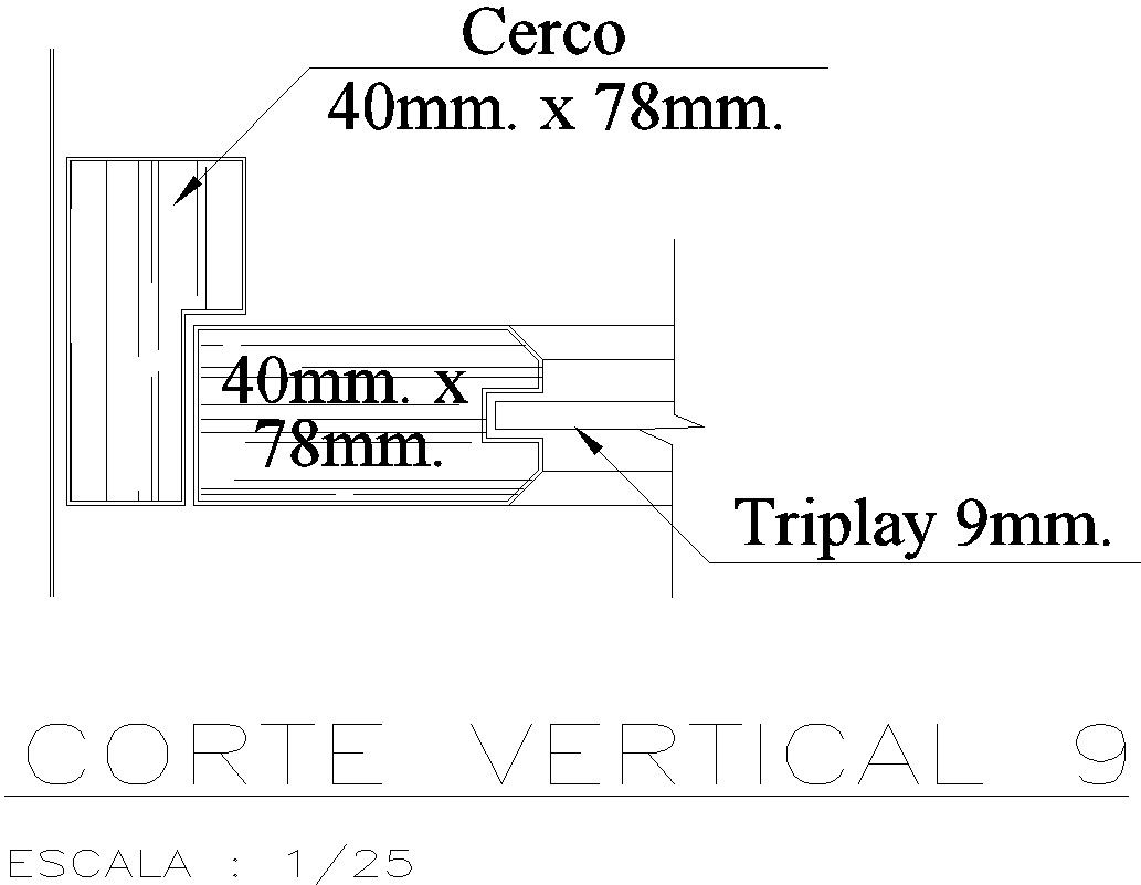 This architectural drawing is Vertical cut 9 of structural member with detail AutoCAD drawing, CAD file, dwg file. In this drawing there were Tri Ply 9mm, plate size is 40x78mm is given, scale is 1/25, etc. are given with details. For more details and information download the drawing file.