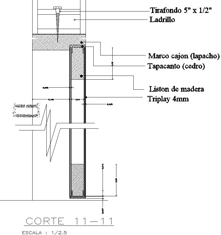 This architectural drawing is Cross section 11 of structural member in detail AutoCAD drawing, dwg file, CAD file. In this drawing there were wood strip, Brick, Drawer frame, 4mm tri ply, etc. are given with details. For more details and information download the drawing file.