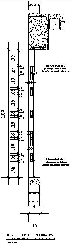 This architectural drawing is Typical detail of high window protector placement in detail AutoCAD drawing, dwg file, CAD file. In this drawing there were 1" square tube with a thickness of 1.5mm Painted with synthetic enamel is given with detail. For more details and information download the drawing file.