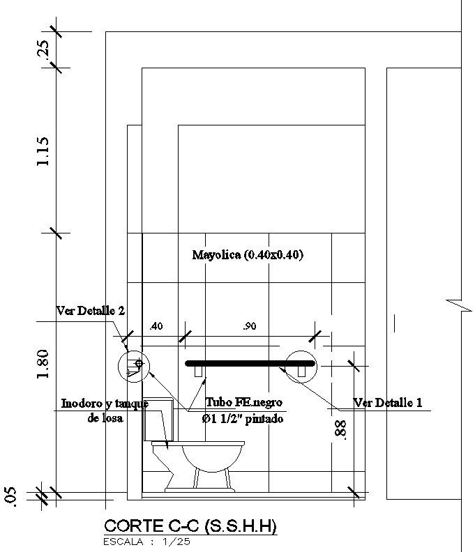 Cross section C-C of toilet block in detail AutoCAD 2D, dwg file, CAD file