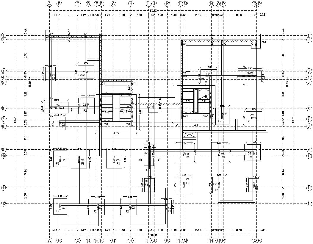 Footing reinforcement details in AutoCAD, dwg file.