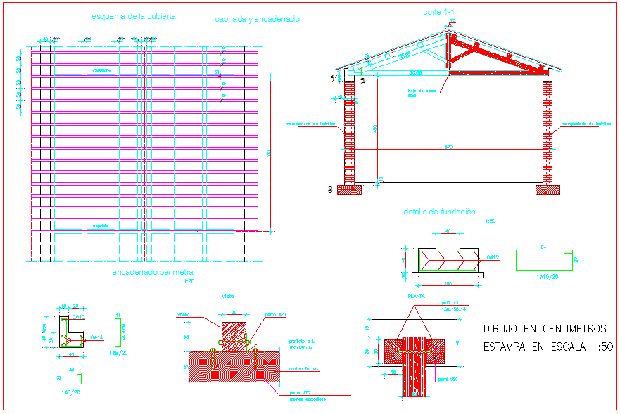 truss view with brick masonry,nut-bolt view with joining detail of truss with dimension