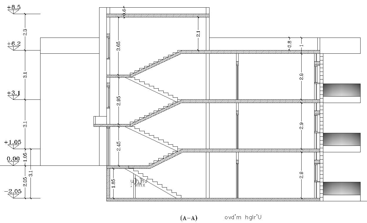 Staircase section for slab details in AutoCAD, dwg file.