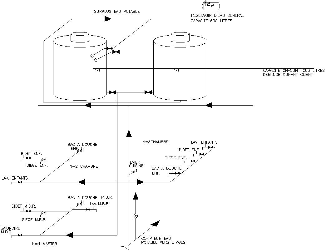 DOMESTIC WATER DISTRIBUTION DIAGRAMS IN AUTOCAD, DWG FILE.