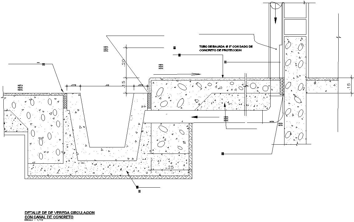 DETAIL OF CIRCULATION SIDEWALK WITH CONCRETE CHANNEL in detail AutoCAD drawing, dwg file, CAD file