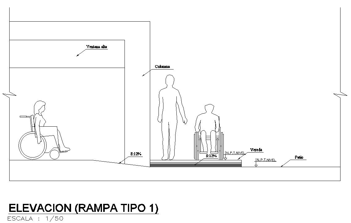 This architectural drawing is Elevation of ramp for wheelchair in detail AutoCAD drawing, dwg file, CAD file. Wheelchair ramps reduce the danger of accidents and injuries while making it simpler for users to access tiny staircases, doorways, raised landings, showers, and sliding glass doors. Hospitals frequently employ wheelchair ramps to make it easier for patients to enter and exit the building. For more details and information download the drawing file.
