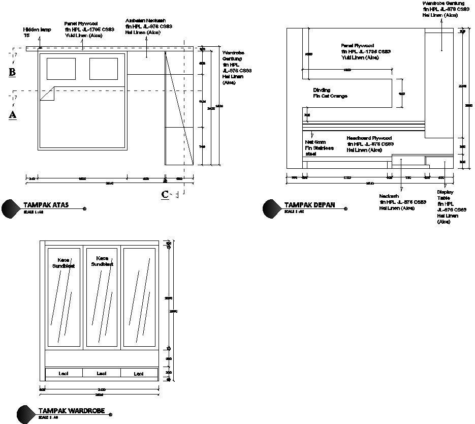 This Architectural Drawing is AutoCAD 2d drawing of Guest bedroom wall elevation in AutoCAD, dwg file.