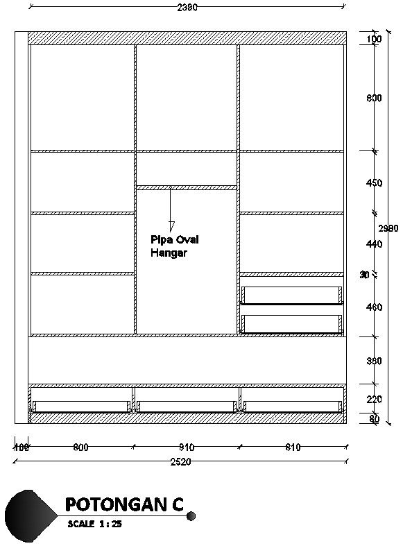 Wardrobe shelf design details in AutoCAD, dwg file.