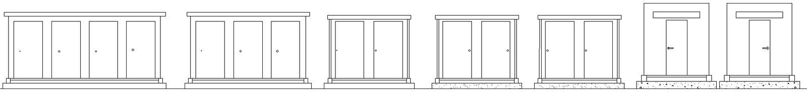 This architectural drawing is Different elevation of shelter of tower in detail AutoCAD drawing, dwg file, CAD file. In this drawing there were one door, two door, three door and four door shelter elevation is given with details. For more details and information download the drawing file.