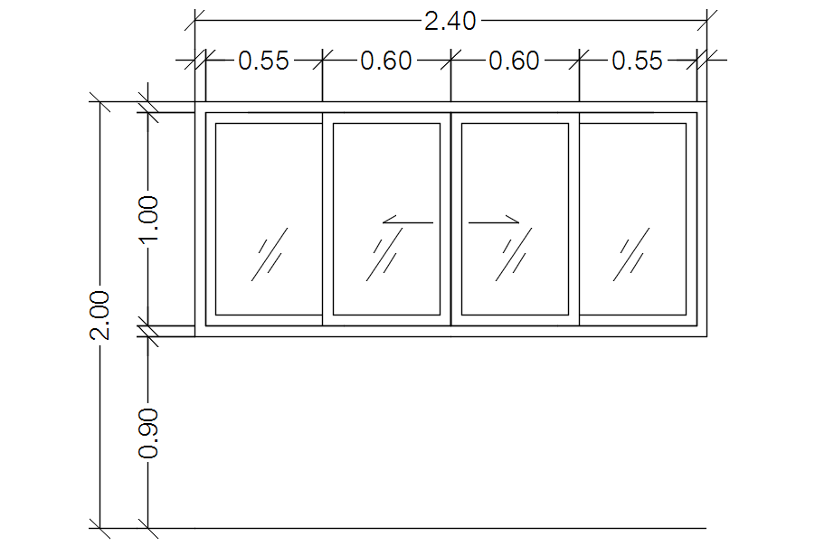 This architectural drawing is Four panel glass window in detail AutoCAD drawing, dwg file, CAD file. Transparency, resistance to heat, pressure, and fracture, as well as chemical resistance, are glass' primary properties. Regarding optical qualities, glass has a number of advantages: Large, uniform panes can be manufactured from it. For more details and information download the drawing file.