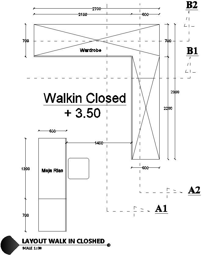 Walking Closet Working drawing details in AutoCAD, DWG file.