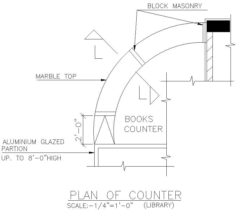 This Architectural Drawing is AutoCAD 2d drawing of Plan of book counter in AutoCAD, dwg file. This outline defines six broad types of library space—collection space, reader seating space, staff work space, meeting space, special use space, and nonassignable space (including mechanical space).