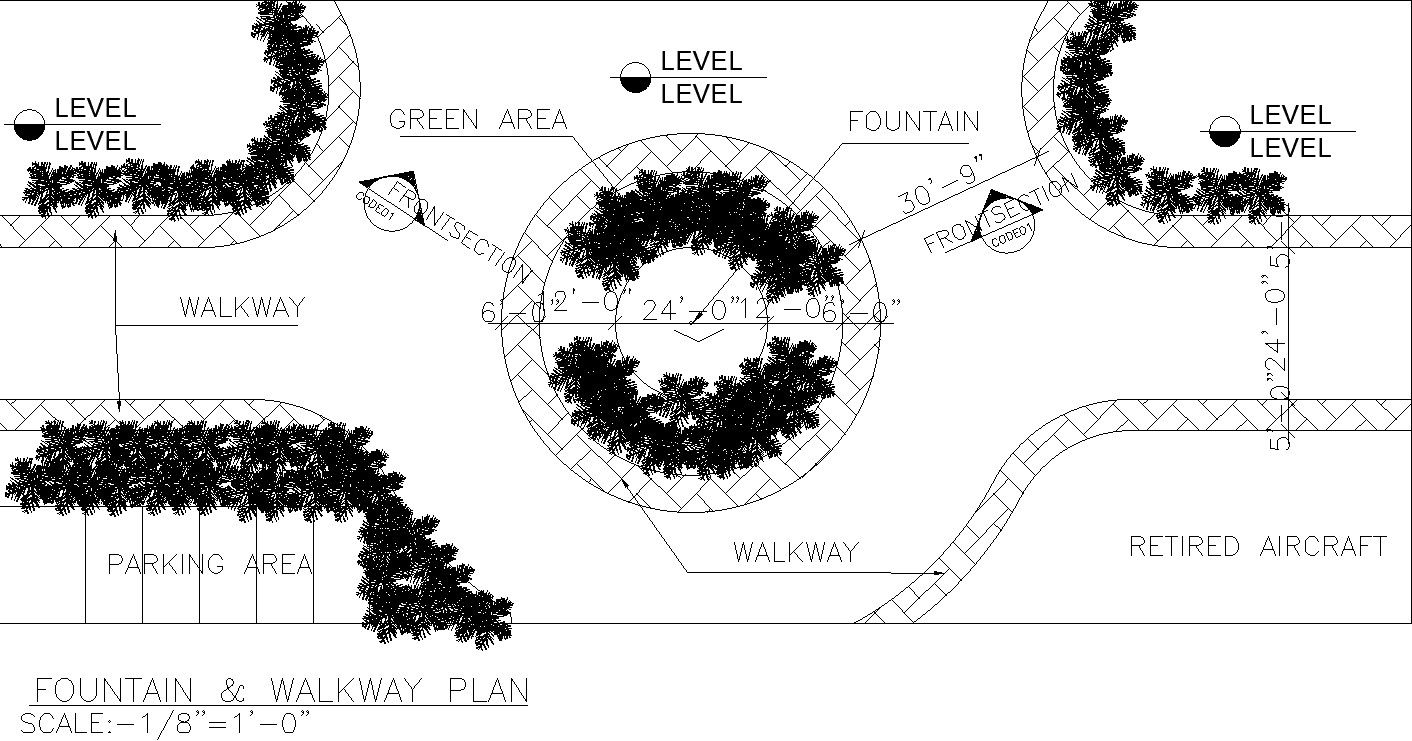 This Architectural Drawing is AutoCAD 2d drawing of Fountain and walkway with landscaping design details in AutoCAD, dwg file. Landscape design, also known as landscape architecture and landscaping, is the arranging and modifying of features in a landscape, urban area or garden. It involves the planning, designing and managing of open spaces to create urban and rural environments.