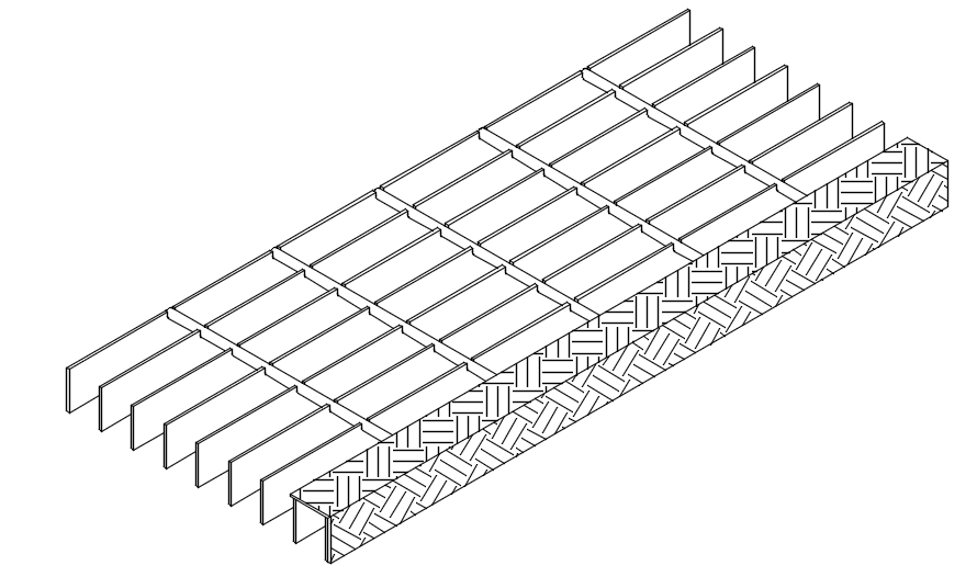 This architectural drawing is Open steel flooring design in detail AutoCAD drawing, dwg file, CAD file. Open steel flooring is typically used in industrial settings because its open design allows for the free flow of light and air. Additionally, the open design avoids the accumulation of dirt and standing water, making it perfect for platforms and walkways where safety is of the utmost importance. For more details and information download the drawing file.