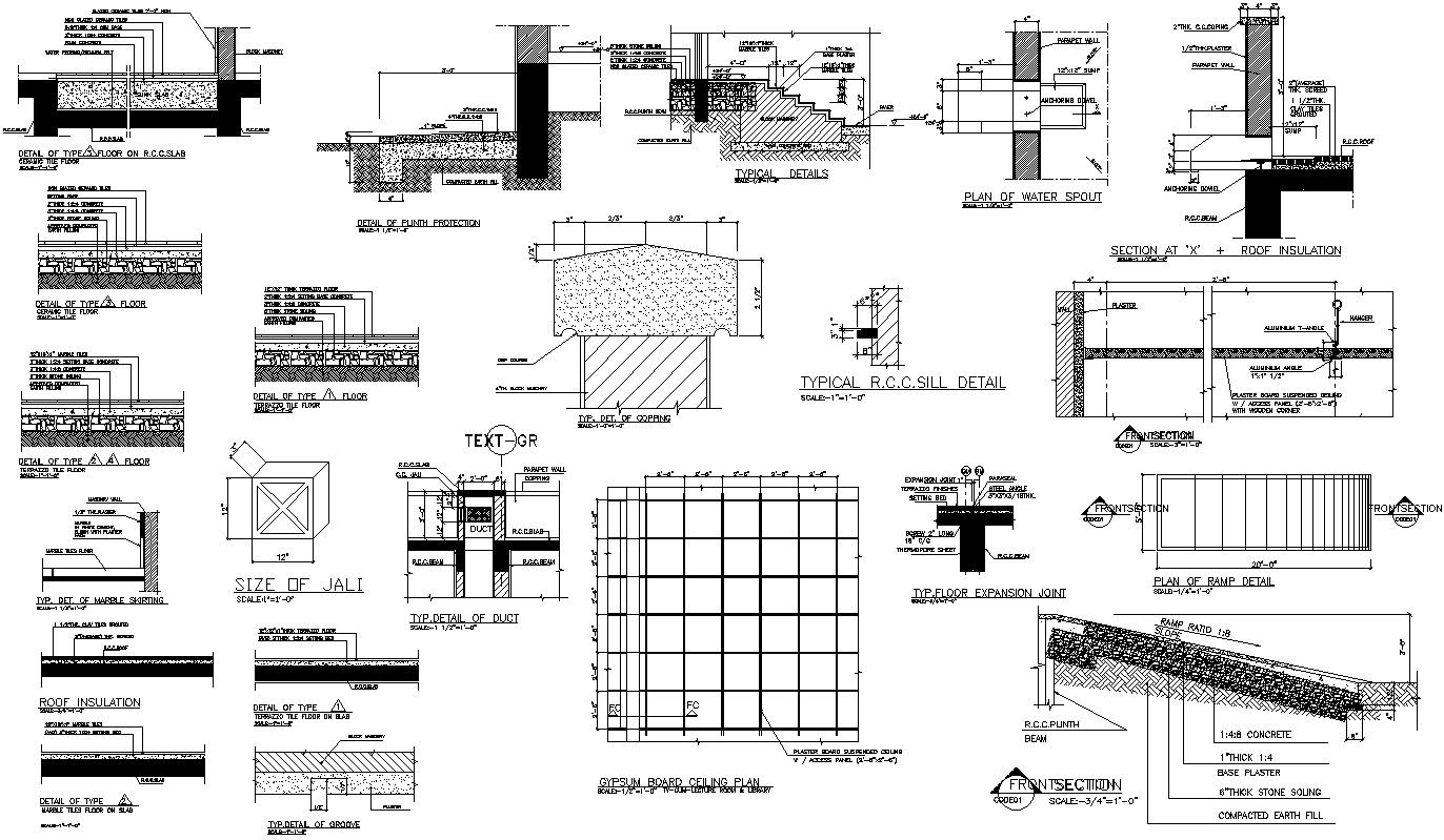 Typical RCC section details in AutoCAD, dwg file.