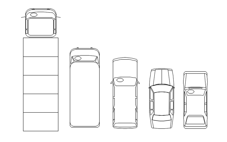 Top view of vehicles in AutoCAD drawing, dwg file, CAD file