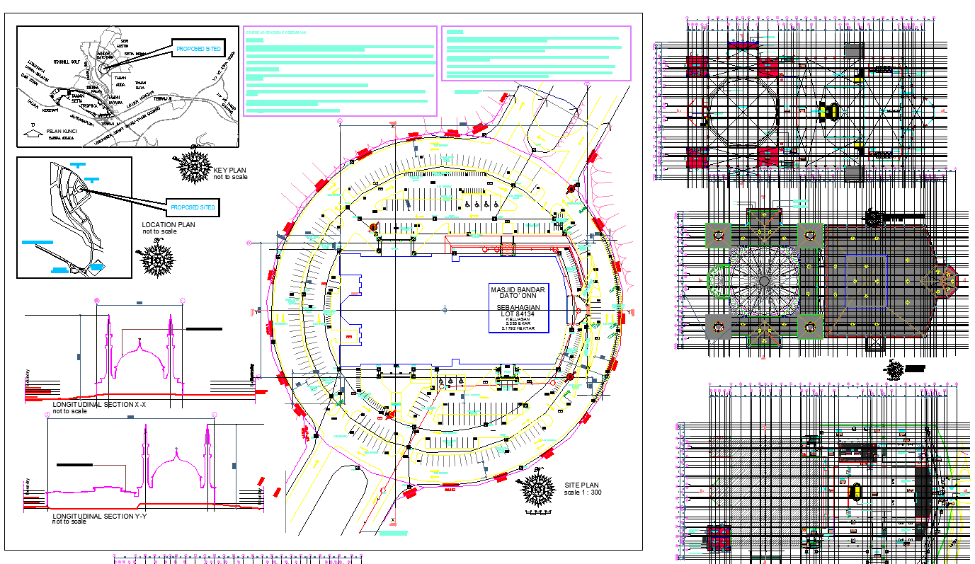 The architecture layout plan, section plan, all detailing about beam and foundation plan, location plan, structure plan and elevation design of Masjid Project.
