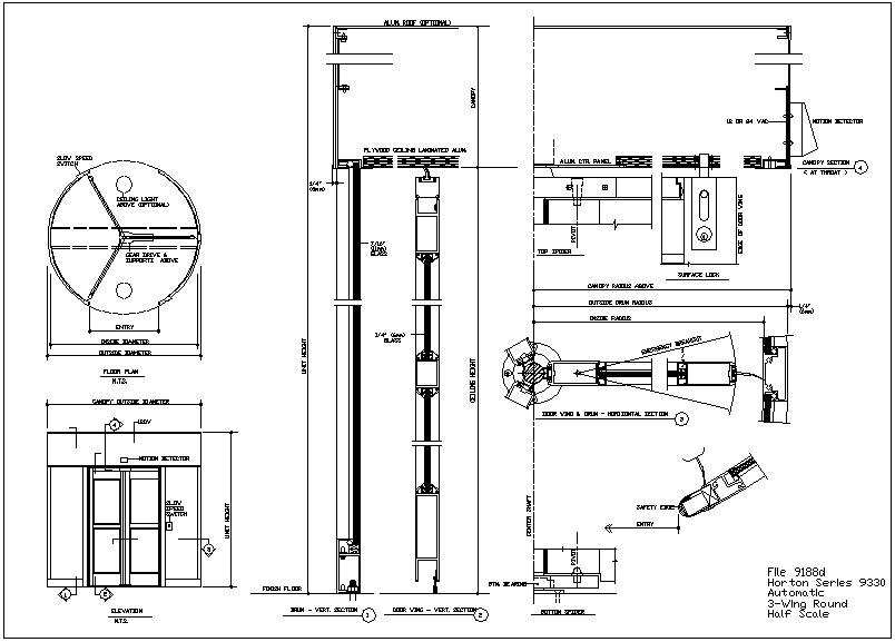 Swivel door design view dwg file with view of entry view,ceiling light and gear drive