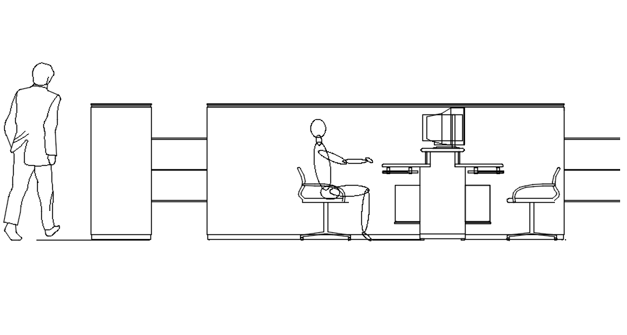 Side view of office in detail AutoCAD drawing, dwg file, CAD file
