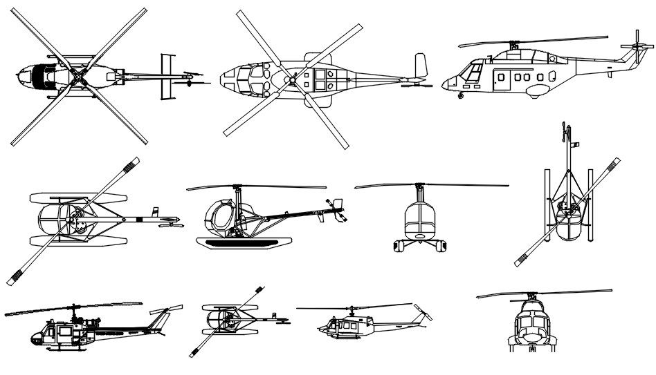 This architectural drawing is Detail drawing of helicopter in AutoCAD 2D, dwg file, CAD file. A helicopter is an aircraft that has at least one horizontal rotor or propeller, allowing it to move freely in all directions while hovering in the air, take off and land vertically. In contrast, an aeroplane can only move in one direction, must take off and land horizontally, and cannot hover. For more details and information download the drawing file.