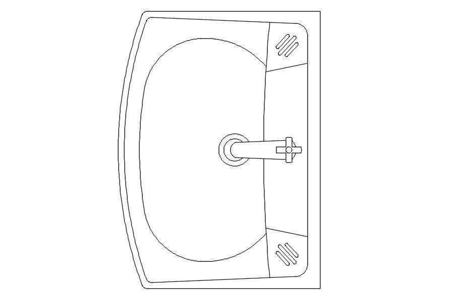 AutoCAD block of washbasin in 2D, dwg file, CAD file