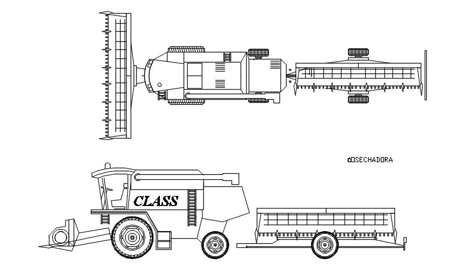 This Architectural Drawing is AutoCAD 2d drawing of Cosechadora Truck block in AutoCAD, dwg file. the combine harvester, or simply combine, is a machine that harvests grain crops. The name derives from its combining three separate operations comprising harvesting—reaping, threshing, and winnowing—into a single process.
