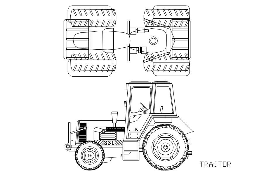 Tractor block details in AutoCAD, dwg file.