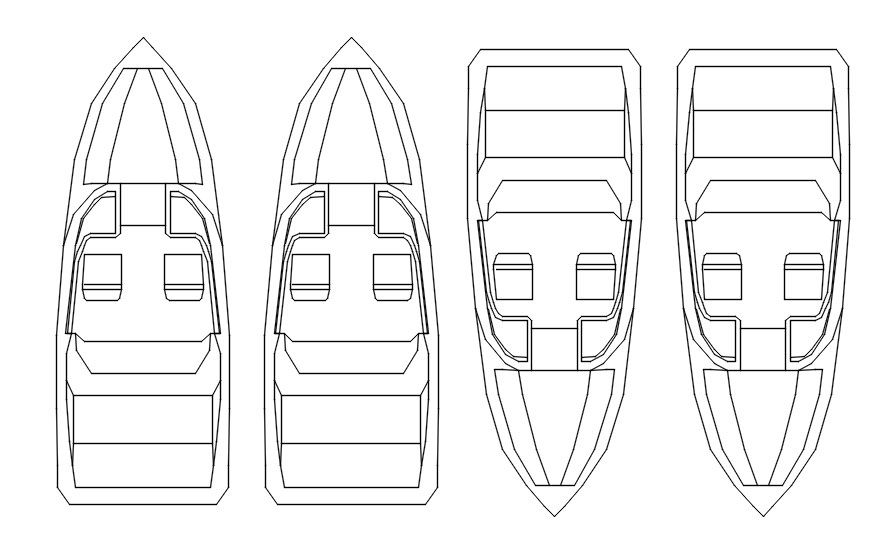 This architectural drawing is Detail drawing of speedboat in AutoCAD 2D, dwg file, CAD file. In order to move through or float on the water, a displacement hull diverts water away from the bow. However, the planning hull skims across the water's surface using hydrodynamic lift. Powerboats can travel across water considerably more quickly because of the less touch with the water. For more details and information download the drawing.