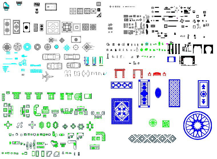 Find here different type of Furniture Blocks like single and double beds, dining table, office table, sofa set, drawing room, door symbol, vehicle etc..
