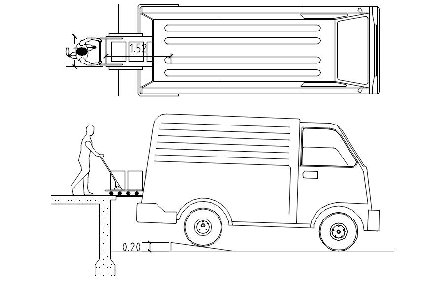 This Architectural Drawing is AutoCAD, 2d drawing of Loading Truck details in AutoCAD, dwg file. Loading and unloading can be dangerous. Machinery can seriously hurt people. Heavy loads, moving or overturning vehicles and working at height can all lead to injuries or death. This guidance should be followed to help avoid problems.