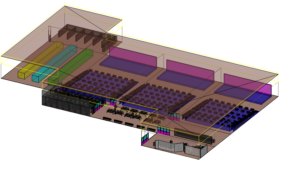 3d Cinema plan dwg file. Find here 3 screen of multiplex cinema in 3d elevation design, also have detailing of seating arrangement plan.