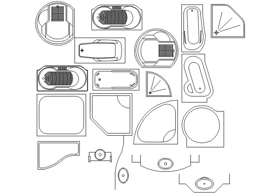 This architectural drawing is Detail drawing of Sanitary fixtures in AutoCAD 2D, dwg file, CAD file. In this drawing there were bathtubs, corner washbasins, different shapes washbasins, etc. designs are given in this file. For more details and information download the drawing file.