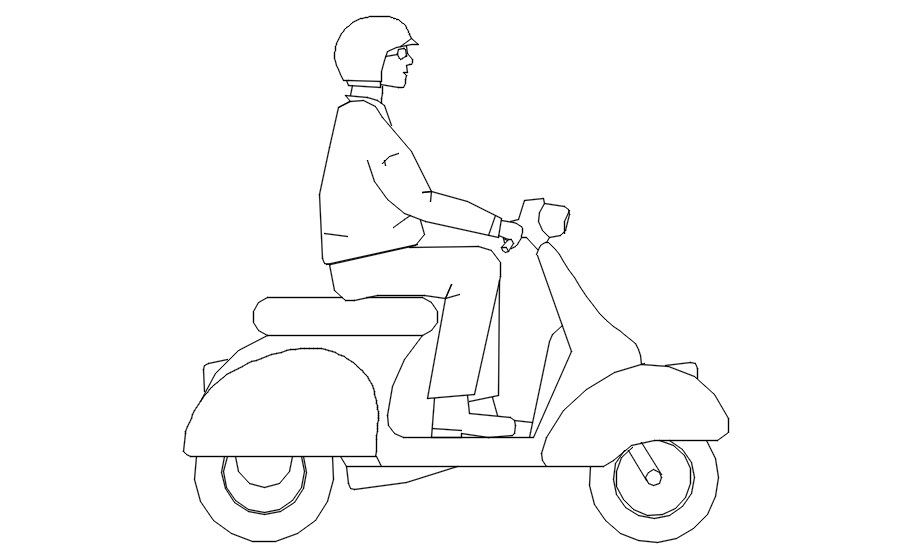 This architectural drawing is Scooter design in AutoCAD drawing, dwg file, CAD file. In this drawing there were a man is seating on the scooter given. For more details and information download the drawing file.
