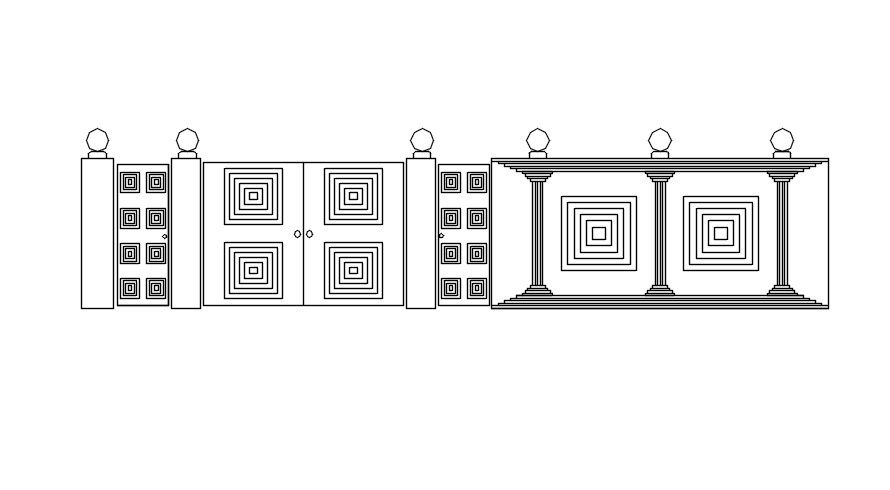 This Architectural Drawing is AutoCAD, 2d drawing of Entrance gate and wall block in AutoCAD, dwg file. An entrance gate is a fence that provides a practical, safe, and secure entryway. An entrance gate is sometimes called an entry gate and is often used for searches at concerts, festivals, and (sports) events.