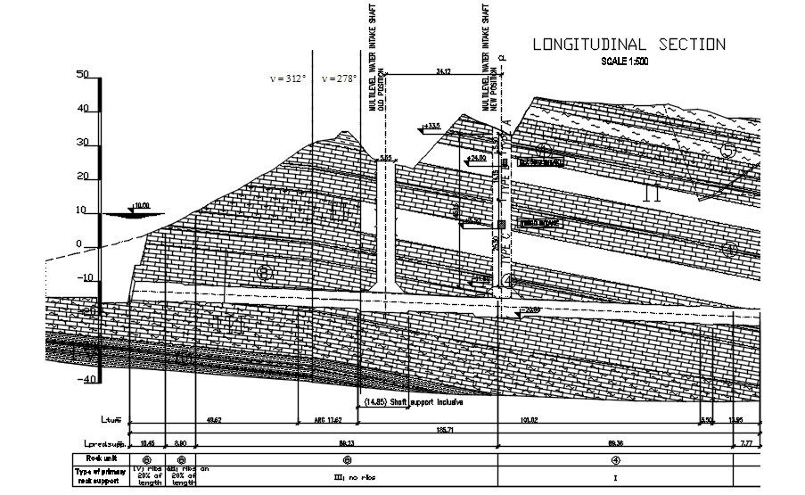 This architectural drawing is Longitudinal section of tunnel shaft in detail AutoCAD drawing, dwg file, CAD file. Shafts are essential to the building and functioning of all sorts of tunnels. All tunnel types can be accessed from the surface to the level of the tunnel thanks to them, including those used for underground rail tunnels and public transportation. For more details and information download the drawing file.