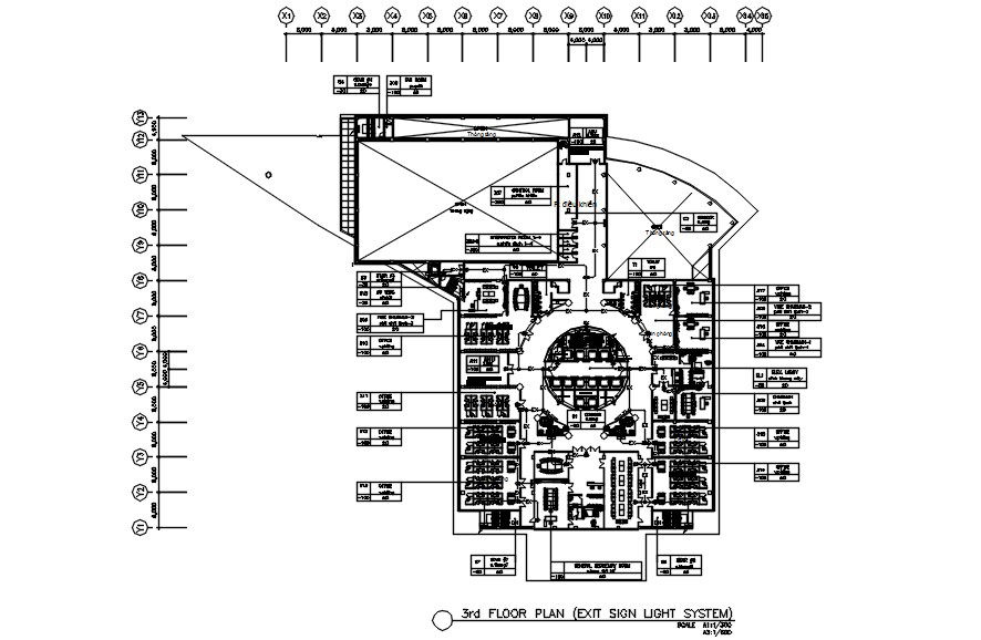3rd floor plan of exit sign light system in detail AutoCAD drawing, CAD file, dwg file