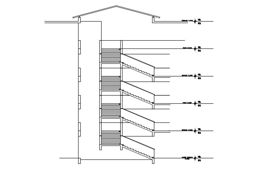 Cross section of staircase section of school in detail AutoCAD drawing, dwg file, CAD file
