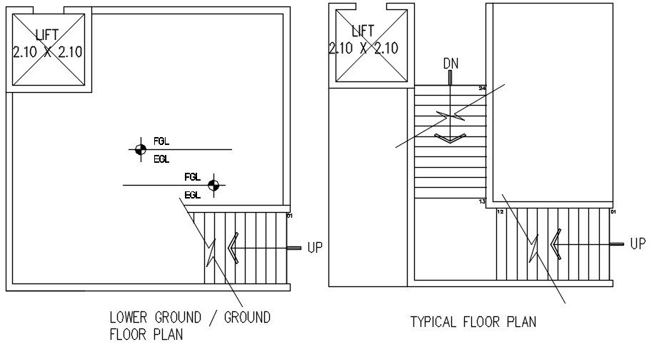 This architectural drawing is L shaped staircase plan in detail AutoCAD drawing, dwg file, CAD file. In this drawing there were lift section, ground floor/ lower ground floor plan, typical floor plan, etc. are given with details. For more details and information download the drawing file.