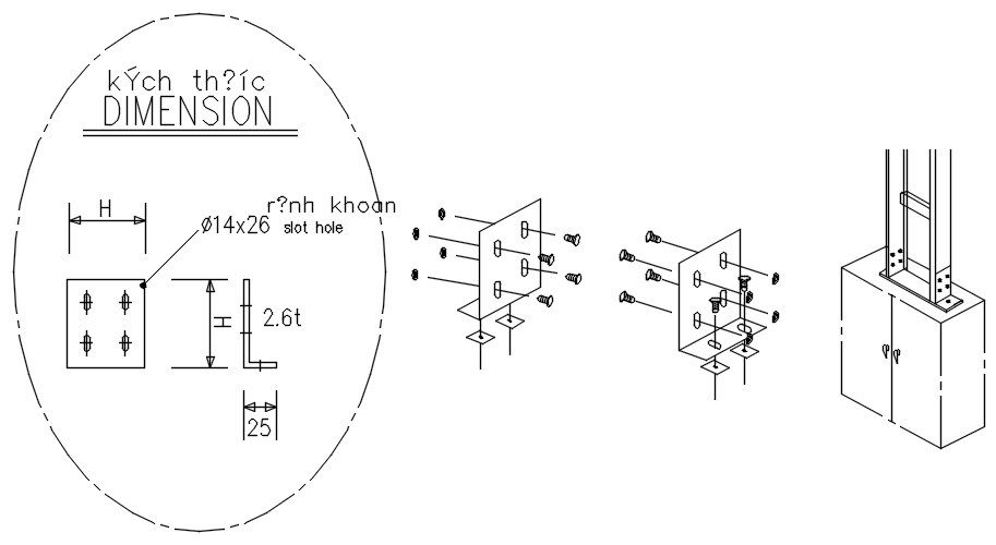 TRAY TO BOX ANGLE CONNECTOR design in detail AutoCAD drawing, dwg file, CAD file