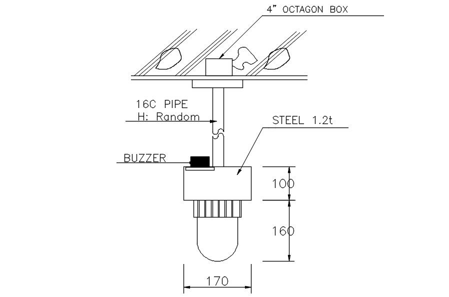 This architectural drawing is 2D drawing of parking machinery in AutoCAD, dwg file, CAD file. In this drawing there were 4" octagon box, steel 1.2t, pipe, buzzer, etc. are given with detail drawing, For more details and information download the drawing file.
