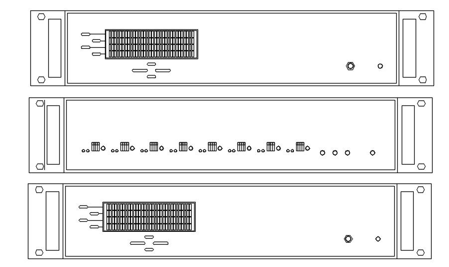 This architectural drawing is Control rack section components design in detail AutoCAD drawing, dwg file, CAD file. In this drawing there were CENTRAL CONTROL UNIT, IR TRANSMITTER, AUDIO OUTPUT UNIT are given with details. For more details and information download the drawing file.