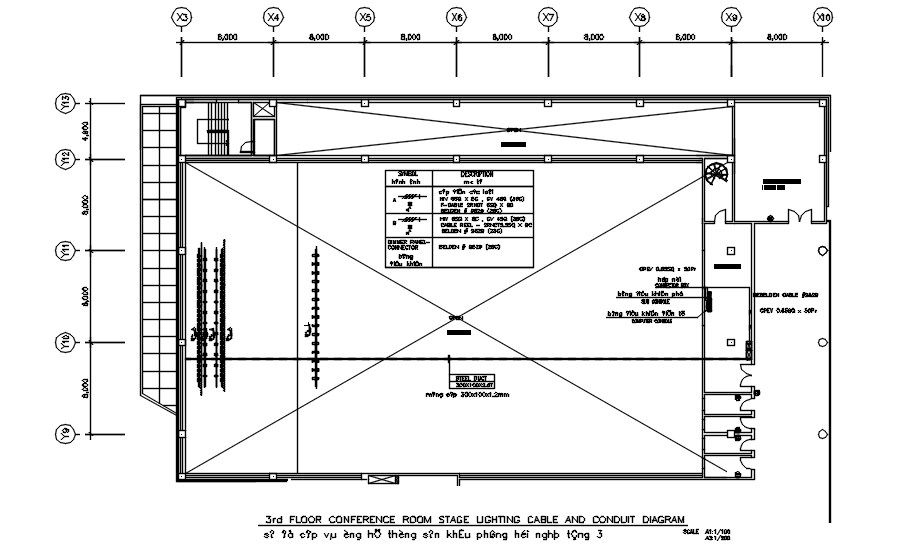 3rd FLOOR CONFERENCE ROOM STAGE LIGHTING CABLE AND CONDUIT DIAGRAM in detail AutoCAD drawing, dwg file, CAD file