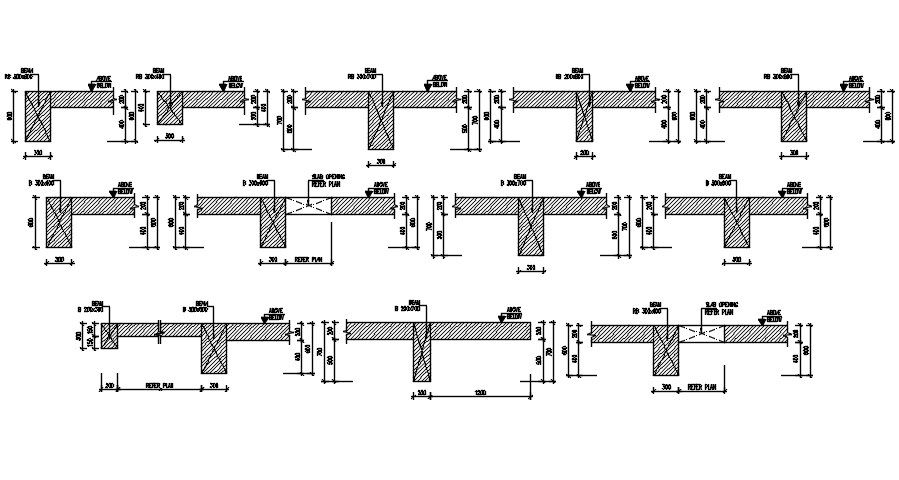 This architectural drawing is Beam-slab detail in AutoCAD 2D drawing, dwg file, CAD file. In this arrangement, beams form the columns while supporting slabs bridge the spaces in between the beams. It is a very established system. The relatively deep beams create a rigid floor with large spans and lateral load resistance. For more details and information download the drawing file.